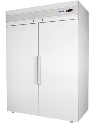 Шкаф холодильный Polair CM110-S (артикул 1104197d) серии Standard, старое название ШХ-1,0. Среднетемпературный профессиональный для кафе, ресторанов, столовых и других предприятий общепита и торговли. Шкаф CM110-S: две двери, 1000 литров, 0…+6°C, R290 пропан, габариты 1402х695х1960 мм, верхний агрегат, стандартный контроллер, динамическое охлаждение, автоматическая оттайка, крашенный корпус (сталь с полимерным покрытием), 8 полок решеток 595x455 мм, замок, подсветка камеры, стенки из пенополиуретана 43 мм, нагрузка на полку 40 кг, колеса (опция).