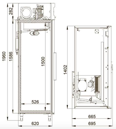 - Профессиональная динамическая система охлаждения равномерно распределяет холодный воздух по камере и обеспечивает охлаждение продуктов на всех полках.