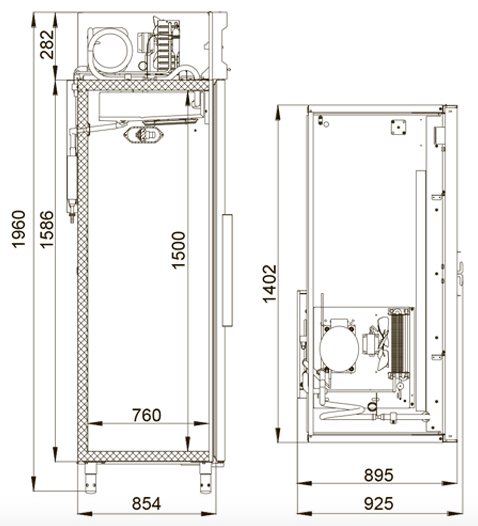 - Профессиональная динамическая система охлаждения равномерно распределяет холодный воздух по камере и обеспечивает охлаждение продуктов на всех полках.