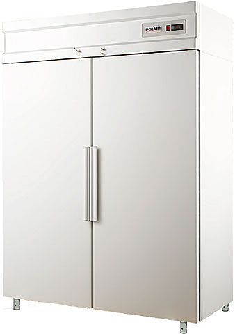 Шкаф холодильный Polair CV110-S (артикул 1106013d) серии Standard. Среднетемпературный профессиональный для кафе, ресторанов, столовых и других предприятий общепита и торговли. Шкаф CV110-S: две двери, 1000 литров, -5…+5°C, R290 пропан, габариты 1402х695х1960 мм, верхний агрегат, стандартный контроллер, динамическое охлаждение, автоматическая оттайка, крашенный корпус (сталь с полимерным покрытием), 8 полок решеток 595x455 мм, замок, подсветка камеры, стенки из пенополиуретана 43 мм, нагрузка на полку 40 кг, колеса (опция).