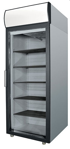 Холодильный односекционный шкаф со стеклом POLAIR DM107-G для кафе, ресторанов, школьных и других столовых, кулинарий, закусочных, АЗС и прочих предприятий общественного питания и торговли. Предназначен для хранения и демонстрации продуктов и напитков. Изготовлен из нержавеющей стали, температурный режим +1°С до +10°С, объем 700 литров, канапе, электронное управление, верхний агрегат, направляющие GN2/1 (650х530мм), хладагент R290.