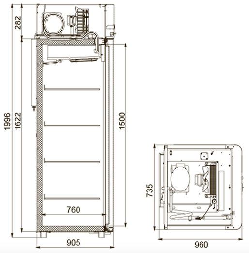 - Габаритные размеры: 735х960х1996 мм.