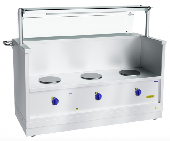 Abat ПМЭС-70Х-01 нерж (21000002758) мармит трехконфорочный для первых блюд. Для наплитной посуды. Элемент линии раздачи Abat Hot-Line. Габаритные размеры: 1500х717(1016)х1217 мм, 1 полка, LED подсветка. Цвет: нержавеющая сталь. Опция: декоративные фронтальные панели, колеса.