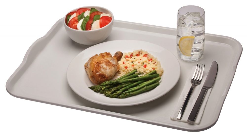 Поднос, выполненный в современном стиле, обладает гладкой поверхностью и поставляется в ассортименте из 38 (тридцати восьми) цветов, чтобы соответствовать любому интерьеру. Нанесите логотип для оптимальной индивидуализации и создания положительного впечатления от обслуживания. Контурные ручки способствуют удобному и безопасному использованию в столовых лечебных учреждений и при доставке блюд пациентам.