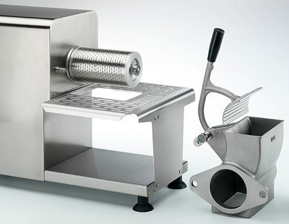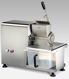 Сверхпрочная и надежная. Имеет сменное входное отверстие из нержавеющей стали. Инновационная разработка. Полностью изготовлена из нержавеющей стали. Идеальная машина позволяющая тереть мягкие и твердые сорта сыра, миндаль, шоколад.
