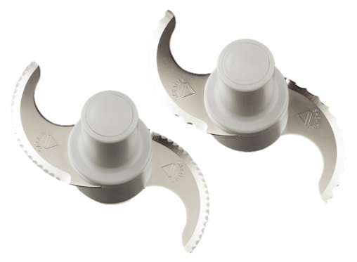 - Три ножа для куттера: гладкий нож для измельчения мяса, соусов, эмульсия (в комплекте); нож с крупными зубчиками для помола и измельчения, замешивания теста (опция); нож с мелкими зубчиками для измельчения зелени и специй (опция).
