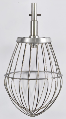 Насадка-венчик Abat 41000000089 с тонкими прутьями для миксера планетарного МПЛ-40 выполнена полностью из аустенитной нержавеющей стали AISI 304 и предназначена для взбивания яичной смеси, сливочного и масляного крема, творожной массы, различных соусов, майонеза.