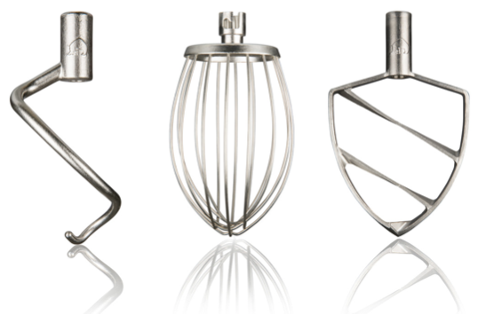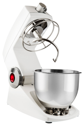 Планетарный миксер Teddy 5L с универсальным приводом – компактная модель с настольной установкой. Применяется для взбивания яиц, кремов, замешивания жидкого теста, например для блинов, и перемешивания различных продуктов. Дежа из нержавеющей стали объемом 5 литров, без механизма подъема. Смена насадок и снятие дежи производятся благодаря подъемной траверсе (подъемная "голова"). Комплектуется сменными насадками: крюк, венчик, лопатка.