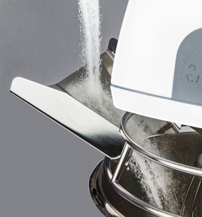 Миксер Teddy 5L оснащен мощным двигателем, с низким уровнем шума. Оборудован удобным двойным (с двух сторон) бесступенчатым вариатором скорости. В комплекте: дежа, решетка и насадки (лопатка, крюк и венчик) изготовленные из нержавеющей стали.