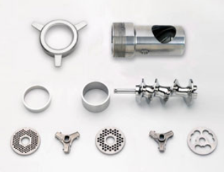 - Мясорубка изготавливается с двумя самозатачивающимися решетками и одним ножом из нержавеющей стали;
