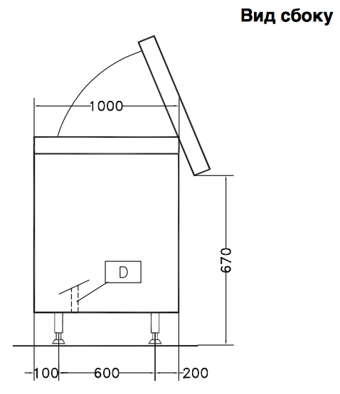 - По окончании рабочего цикла механизм с линейным мотором поднимает корзину; управление - кнопка двойного нажатия + звуковая сигнализация.