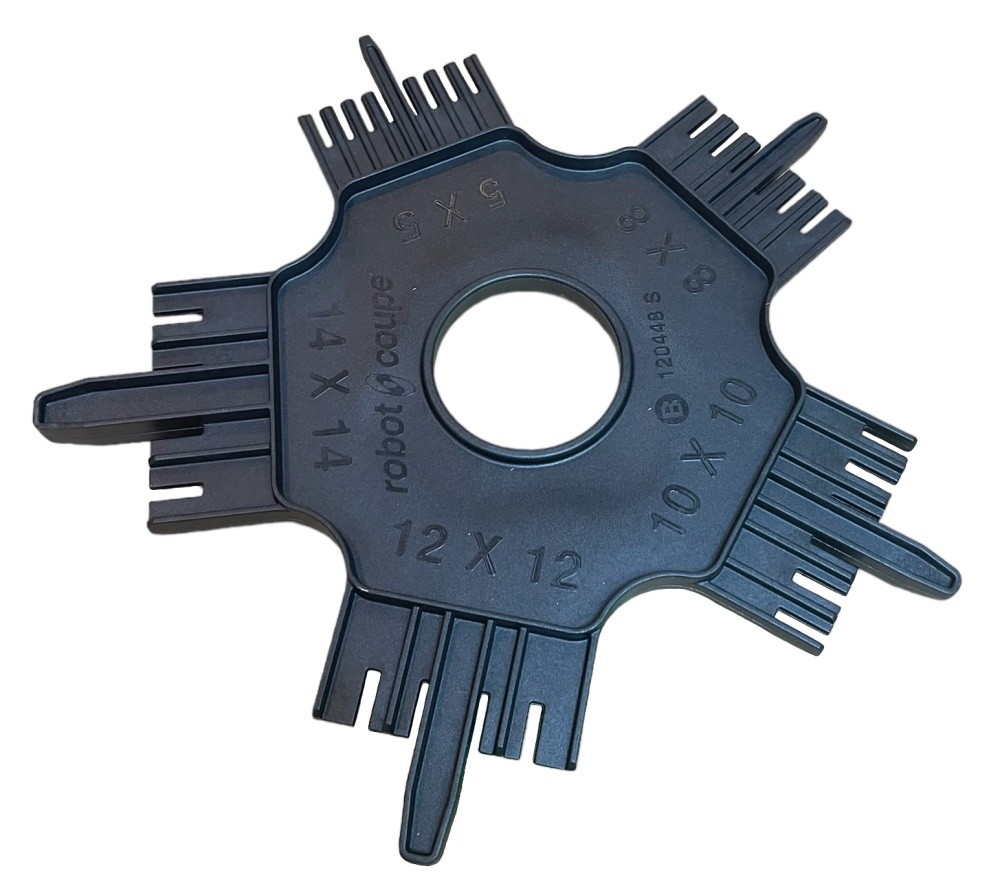 Специальный набор аксессуаров для очистки решеток. Позволяет достаточно быстро и просто освободить решетки для нарезки кубиков от застрявшего между лезвиями продукта.