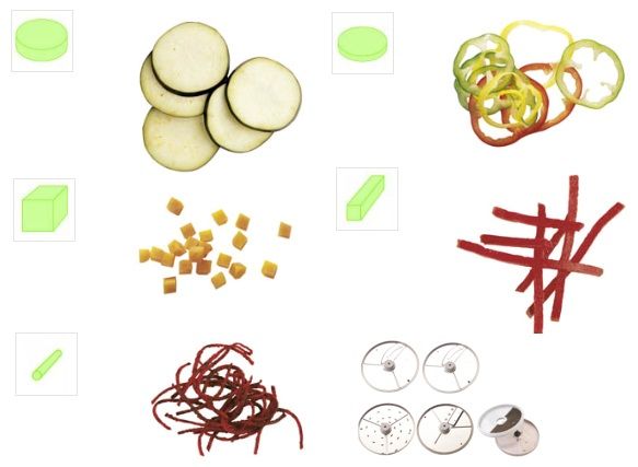 - Доступные виды нарезки: ломтик, волнистый ломтик, соломка, терка, кубик, картофель фри.