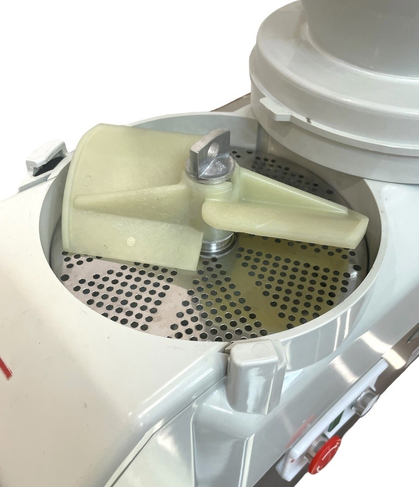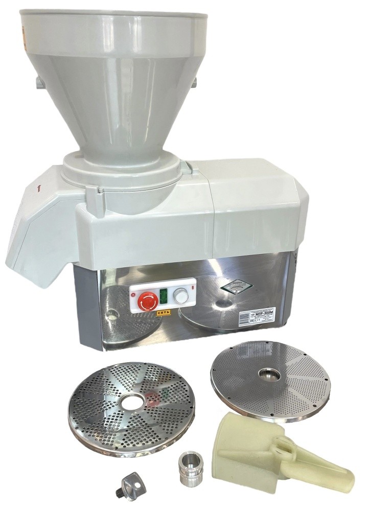 Протирочочая машина Торгмаш МПР-350М-01 для использования на профессиональных кухнях в ресторанах, столовых и других предприятиях общественного питания. Машина предназначена для протирки вареных продуктов (картофеля, свеклы, моркови, жидких каш, гороха, фасоли, яблок, творога и других продуктов), нарезки сырых или вареных овощей и фруктов (картофеля, свеклы, моркови, лука, репы, брюквы, огурцов, томатов и т.д.), а также тонкого измельчения измельчения картофеля, моркови, и шинковки капусты. Способы переработки продуктов: 2 вида протирки. Диски входят в комплект поставки.