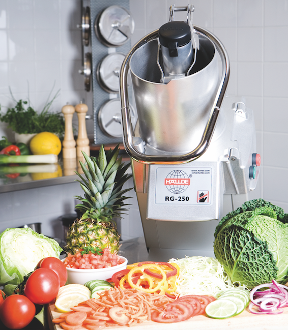 Профессиональная односкоростная овощерезательная машина HALLDE RG-250 с замком (11116). Предназначена для переработки/измельчения фруктов, овощей, сухого хлеба, сыра, орехов, грибов и т.д. на предприятиях общественного питания и пищевых производствах. Артикул 11116 - это однофазная версия машины, оснащенная запирающим замком. Всего предлагается 5 вариантов модели RG-250: