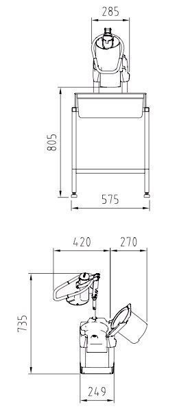 - Овощерезка может устанавливаться на столешницу или на специальную подставку с регулируемой высотой.
