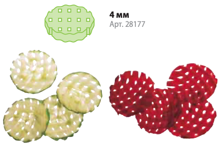 Уникальный диск гофре 4 мм Robot Coupe 28177W для вафельной нарезки (в форме решеточек) толщиной 4мм. Старый артикул 28177. Диск 28177W изготовлен из стали с покрытием Mineral+. Это покрытие на минеральной основе обеспечивает защиту поверхности диска, а также снижает трение на поверхности диска, обеспечивает высокую точность и качество нарезки и сохраняет свежесть продуктов.
