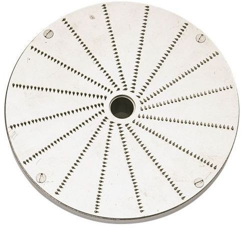 Диск терка Robot Coupe 27079 используется на профессиональных кухнях с машинами Robot Coupe, для натирания или измельчения твердых продуктов, например для хрена или редьки. Толщина измельчения 1 мм. Диск изготовлен из качественной нержавеющей стали.
