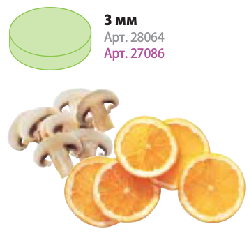 Диск слайсер 3 мм Robot Coupe 28064W Mineral+ для обычной нарезки толщиной 3 мм. Обозначение на диске E/S 3. Старый артикул 28064. Диск 28064W изготовлен из стали с покрытием Mineral+. Это специальное покрытие на минеральной основе обеспечивающее дополнительную защиту поверхности диска, а также снижающее силу трения продукта о поверхность диска и обеспечивающее высокую точность и качество нарезки с сохранением свежести продуктов. Описание диска Robot Coupe 28064WДиск слайсер 3мм Robot Coupe 28064W используется для стандартной нарезки ломтиком, шинковки различных мягких и твердых овощей и фруктов. Он без труда нарезает идеальные кружочки или кольца, часто используется для нарезки шампиньонов и апельсинов. Изготовлен из нержавеющей стали. Внимание! Обозначение E/S 3 на диске не является артикулом, а только обозначает тип и толщину нарезки. Данное обозначение может встречаться на дисках Robot Coupe от разных моделей овощерезок. Во избежание ошибки используйте для подбора дисков каталог продукции или проконсультируйтесь у наших менеджеров: 8 (495) 212-18-44. Для продления срока эксплуатации дисков требуется их правильная мойка и хранение. Не допускается хранение режущих дисков навалом, так как это приводит к ухудшению заточки, деформации самих дисков и режущих лезвий. Рекомендуем использовать для хранения дисков специальные аксессуары: настенные полки, модульные держатели и защитные крышки. Использование данных аксессуаров поможет оптимизировать рабочее пространство и продлит срок эксплуатации дисков. Совместимые с диском Robot Coupe 28064W аппараты- Овощерезки Robot Coupe серий: CL50, CL50 Ultra, CL50 Gourmet, CL52, CL55 и CL60.