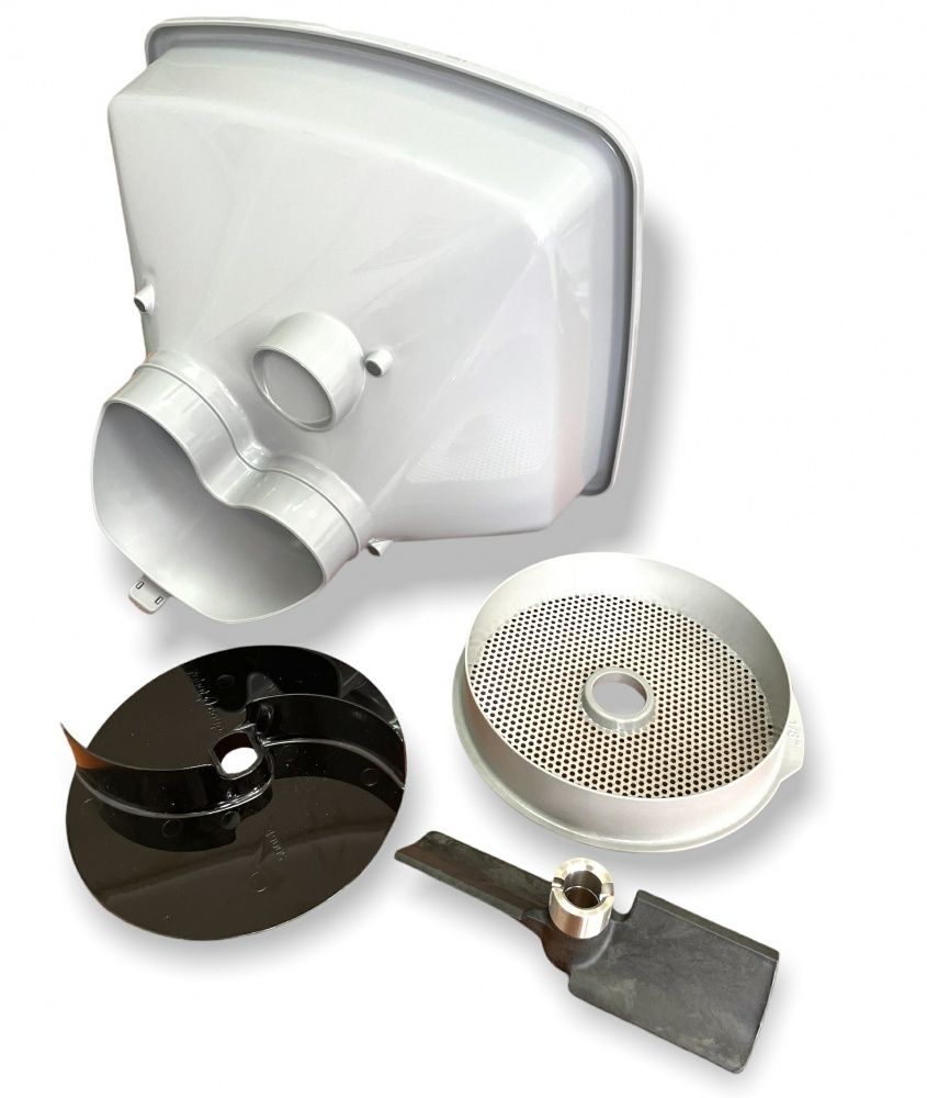 - Протирка 1,5 мм 28186 (состоит из: протирочный диск с отверстиями 1,5 мм; лопасть для протирания - 39732; специальный диск сбрасыватель - 49005).