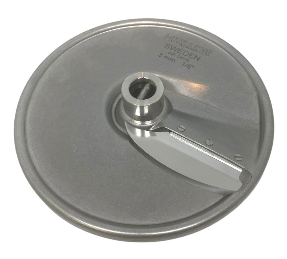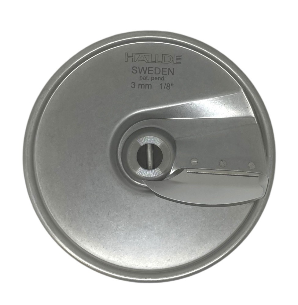 Диск слайсер Hallde 63161 3 мм, для шинковки, нарезки ломтиком различных продуктов в кафе, ресторанах, столовых и других предприятиях общественного питания и торговли. Используется только с профессиональными овощерезками Hallde RG-50, RG-50S, RG-100, CC-32S, CC-34.