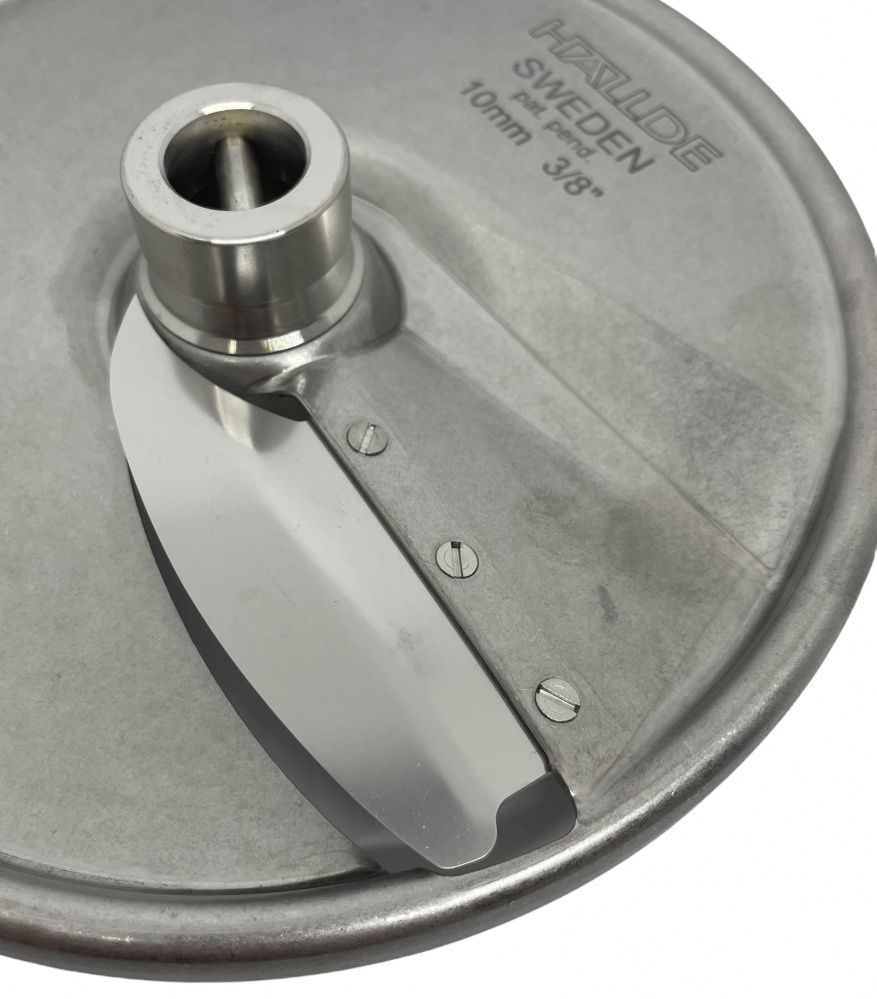 Диск слайсер 10 мм Hallde 63104 с одним лезвием, для шинковки, нарезки ломтиком различных продуктов в кафе, ресторанах, столовых и других предприятиях общественного питания и торговли. Используется только с профессиональными овощерезками Hallde RG-50, RG-50S, RG-100, CC-32S, CC-34.