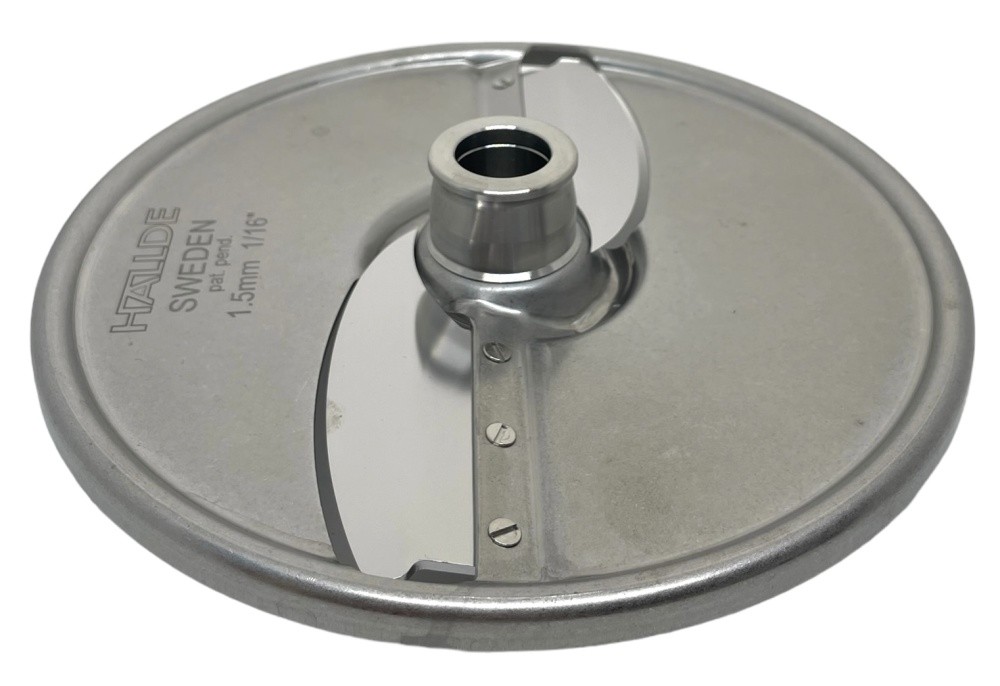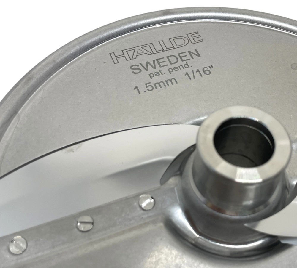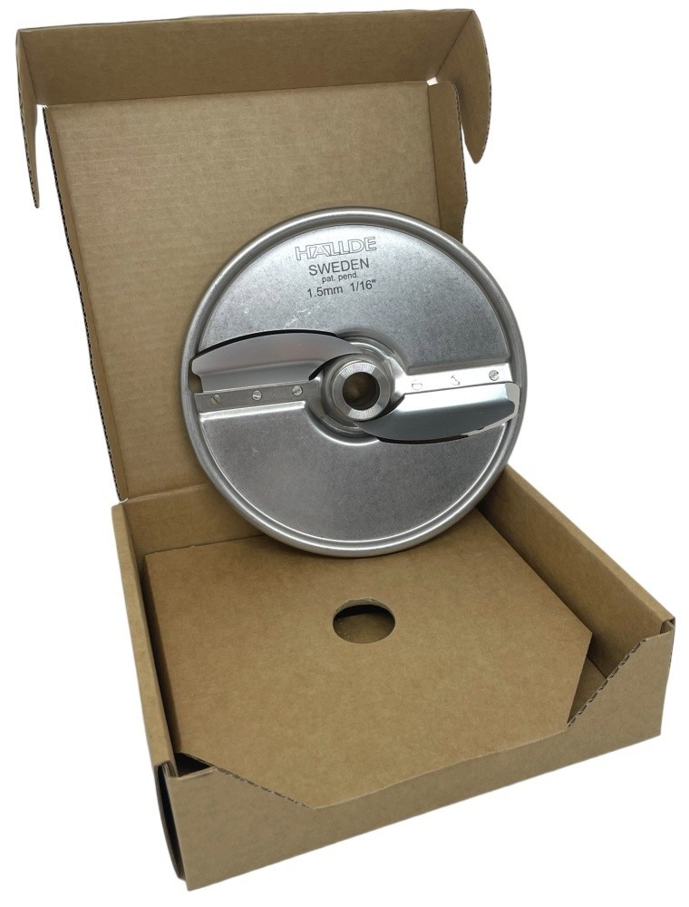 Диск ломтик Hallde 63111 с 2 лезвиями, толщина нарезки 1,5 мм. Для овощерезательных машин Hallde: RG-200, RG-250, RG-250 diwash. Применяется для нарезки ломтиком твёрдых, и мягких овощей, фруктов, грибов и т.д., шинковки капусты. Сменные лезвия.