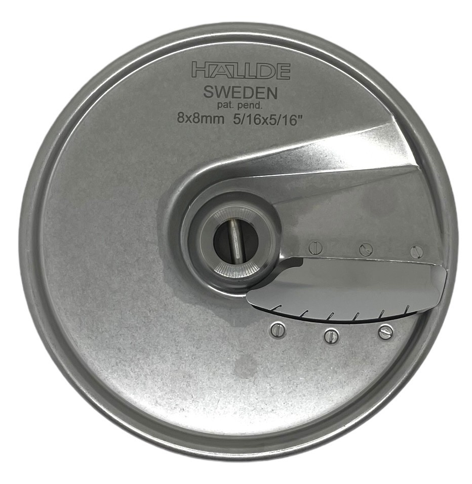 Диск соломка Hallde 63146 для нарезки соломкой размером 8х8 мм различных продуктов в кафе, ресторанах и других предприятиях общественного питания. Диск Hallde 63146 используется только с профессиональными овощерезками Hallde RG-100.