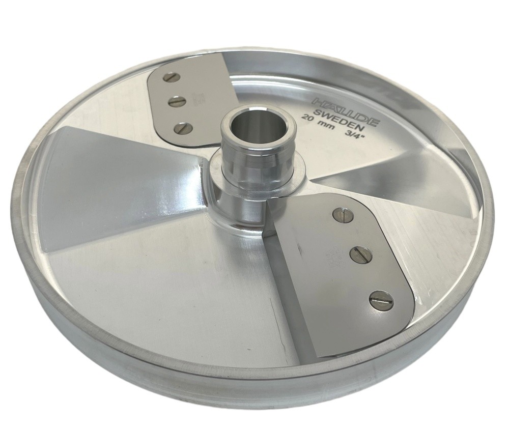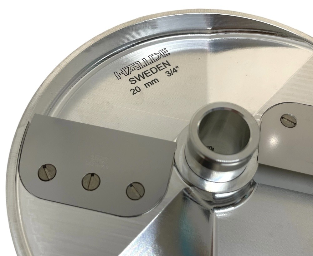 Диск ломтик ВП Hallde 65024. Толщина нарезки 20 мм. 2 прямых лезвия. Диск 65024 используется только с профессиональными овощерезками Hallde: RG-300i, RG-350, RG-400, RG-400i. ВП - высокопроизводительный и усиленный диск для нарезки ломтиком, кубиком и шинковки твердых овощей и фруктов. Сменные лезвия. Изготовлен из нержавеющей стали.