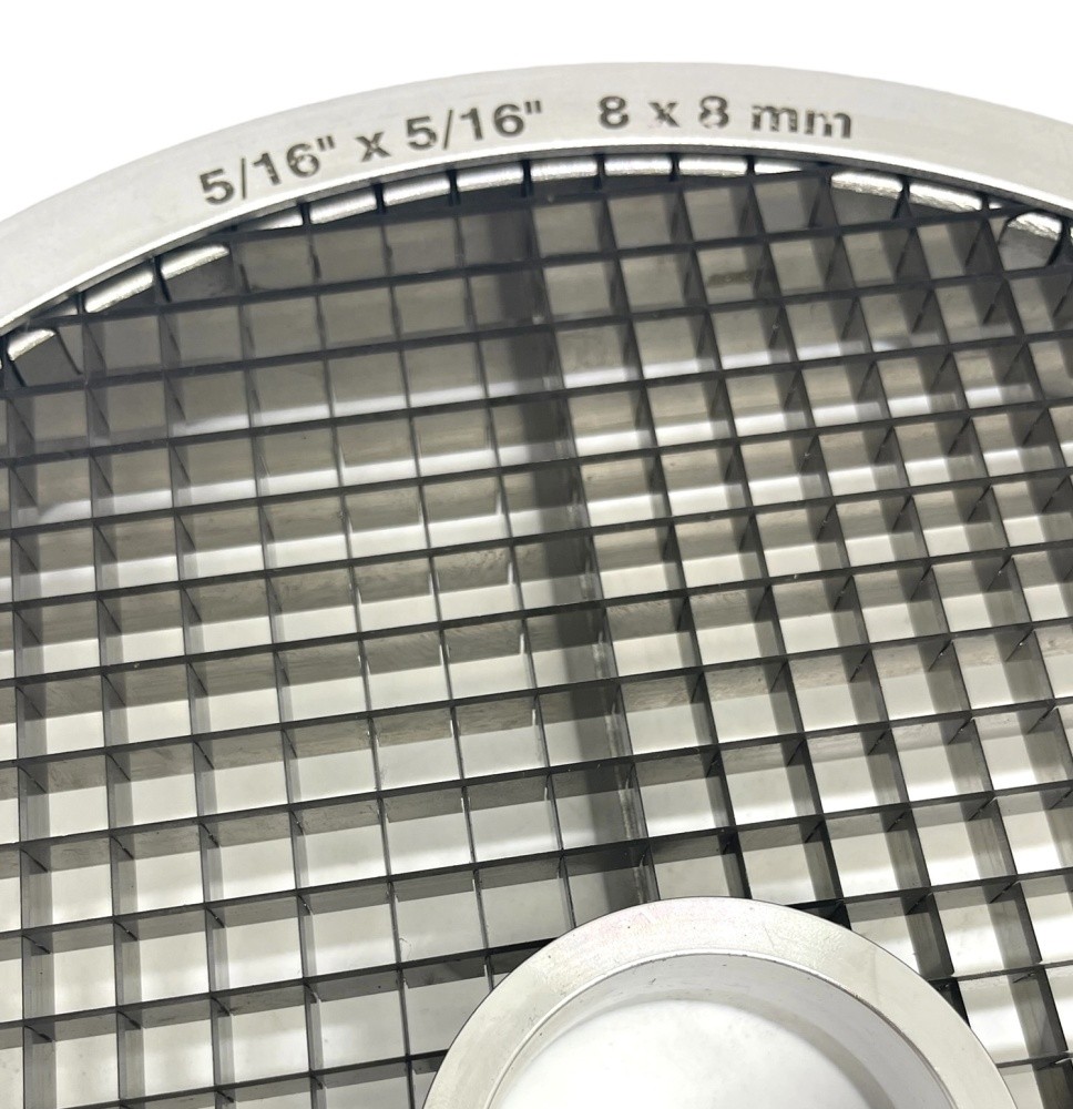 Решётка для нарезки кубиками, 8x8 мм Hallde 37178, для аппаратов: RG-300i, RG-350, RG-400, RG-400i (с лотком 37297). Решётки предназначены использования в сочетании с подходящими подрезными дисками (диски для нарезки ломтиком и кубиком).