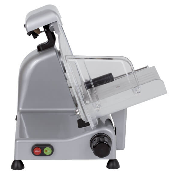 Слайсер RGV Lusso 25 GS наклонный, профессиональный, полуавтоматический для кафе, ресторанов, столовых и других предприятий общественного питания и торговли.Используется для нарезки твердых продуктов (сыров, колбас, мяса и т.д.) на ровные ломтики гарантированно одинаковой толщины. Настольный. Толщина нарезки: 0-15 мм. Нож из хромированной стали. Диаметр ножа: 250 мм. Максимальный размер продукта: 210х165 мм. Фиксированное затачивающее устройство. Полуавтоматический означает наличие электропривода ножа (автоматическое вращение), и ручное передвижение продукта.