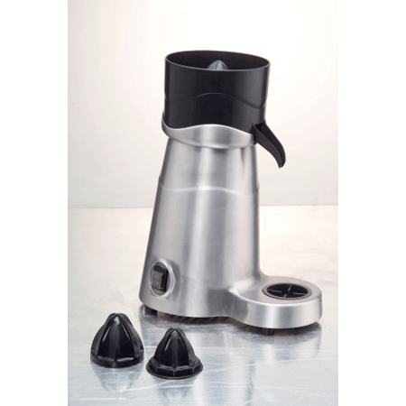 Соковыжималка для цитрусовых EKSI J-50 электрическая, из нержавеющей стали, скорость вращения ножей 1800 оборотов в минуту, мощность 180 Вт, модель оборудована прижимным механизмом и оснащена крышкой с рычагом.