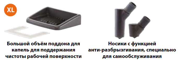- Поддон для капель размера XL оставляет рабочую поверхность чистой.