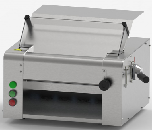 Тестораскаточная машина Abat ТРМ-320 (41000000119) настольная профессиональная для работы с тестом любого типа: пресным, соленым, дрожжевым, слоёным и т. д. в кафе, ресторанах, столовых и других предприятиях общественного питания и торговли. Тестораскаточная машина ТРМ-320 воздействует на тесто с помощью валиков, превращая исходную массу в ровный пласт необходимой толщины готовый к дальнейшей обработке: приготовления коржей, пиццы, пирогов, хлеба.