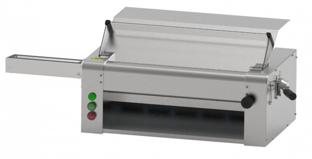 Тестораскаточная машина Abat ТРМ-520 (41000000121) настольная профессиональная для работы с тестом любого типа: пресным, соленым, дрожжевым, слоёным и т. д. в кафе, ресторанах, столовых и других предприятиях общественного питания и торговли. Тестораскаточная машина ТРМ-520 воздействует на тесто с помощью валиков, превращая исходную массу в ровный пласт необходимой толщины готовый к дальнейшей обработке: приготовления коржей, пиццы, пирогов, хлеба.