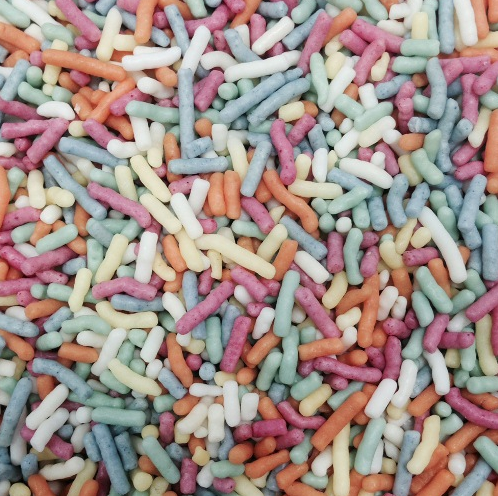 Продукт на основе кондитерской глазури, калиброванные гранулы продолговатой формы с глянцевой поверхностью.