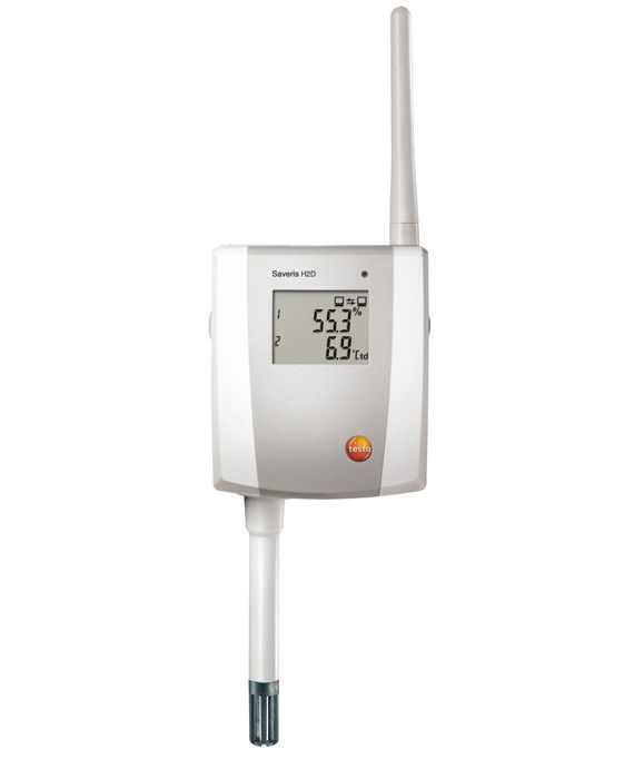 Радиозонд testo Saveris H2 D с дисплеем, 2.4 ГГц, вкл. настенный кронштейн, 4 щелочно-марганцевые батарейки типа AA и заводской протокол калибровки