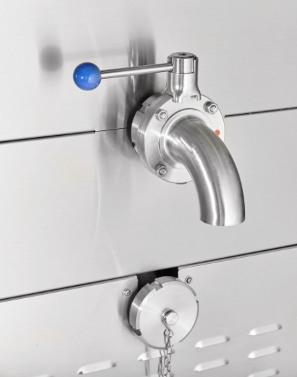 - Ферментатор не требует особого ухода, благодаря наличию двух сливных отверстий - верхнее отверстие для слива полезного объема закваски и нижнее отверстие для полного опустошения резервуара - облегчается не только слив готовой закваски, но и мойка резервуара.