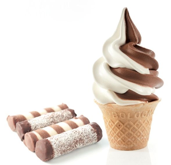 Для каждого из 2-х вкусов предусмотрен свой кран раздачи, третий кран позволяет порционировать мороженое, состоящее одновременно из двух вкусов.