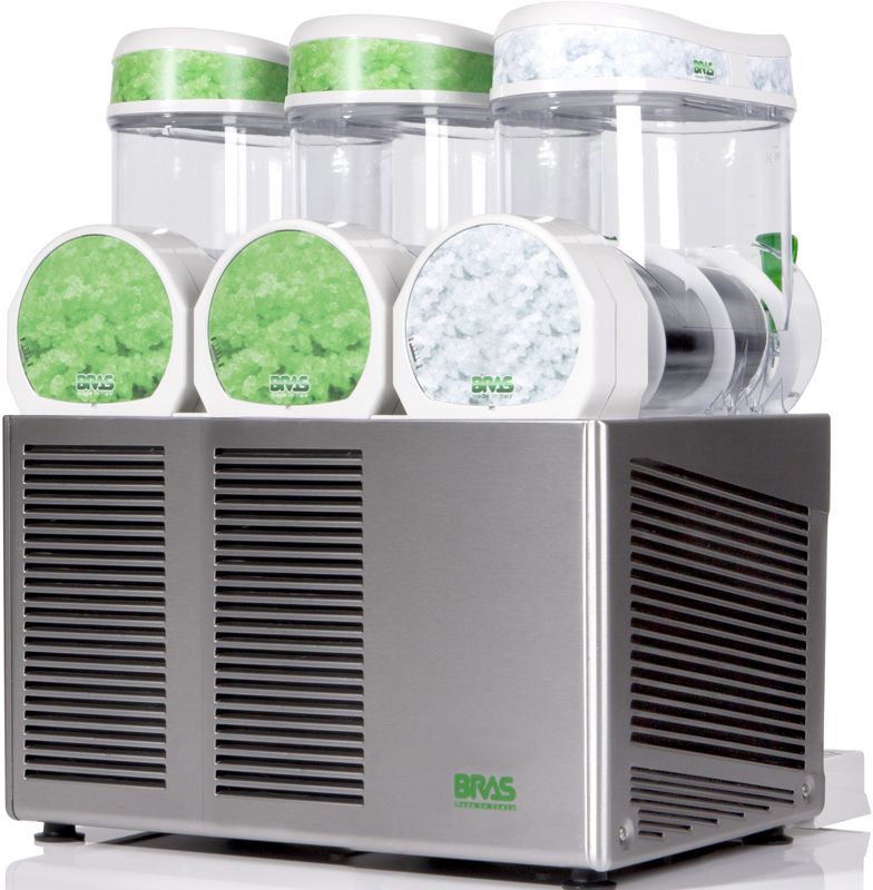 Аппарат для замороженных напитков предназначен для получения десерта из ледяной крошки с фруктовым наполнителем. Уровень шума - менее 70дцб. Аппарат может работать в режиме сокоохладителя. 3 прозрачные небьющиеся съёмные ванны объемом 6л каждая изготовлены из пищевого поликарбоната. Аппарат оснащен системой перемешивания с запатентованным электромагнитным приводом, 3 термостатами, конденсатором с воздушным охлаждением и герметически запаянным компрессором. Корпус аппарата выполнен из нержавеющей стали. Температура продукции устанавливается с помощью плавной регулировки.