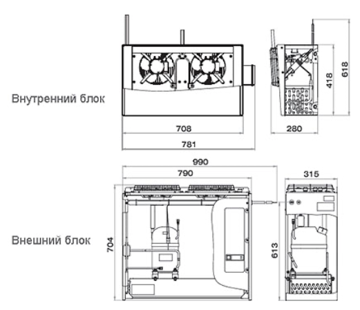 - Размеры внешнего блока: 790(990)х315х704 мм.