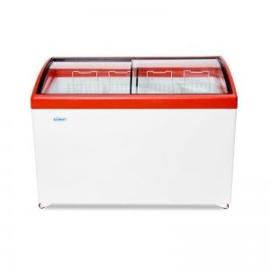 Морозильные лари с гнутым стеклом - СНЕЖ МЛГ 400 лари с выпуклой раздвижной стеклянной крышкой, которая, легко скользя при открытии, обеспечивает наглядность и легкий доступ к товарам. За счет гнутого стекла, у этих ларей более привлекательный дизайн стимулирующий совершить покупку, поэтому такой морозильный ларь еще называют "импульсным".