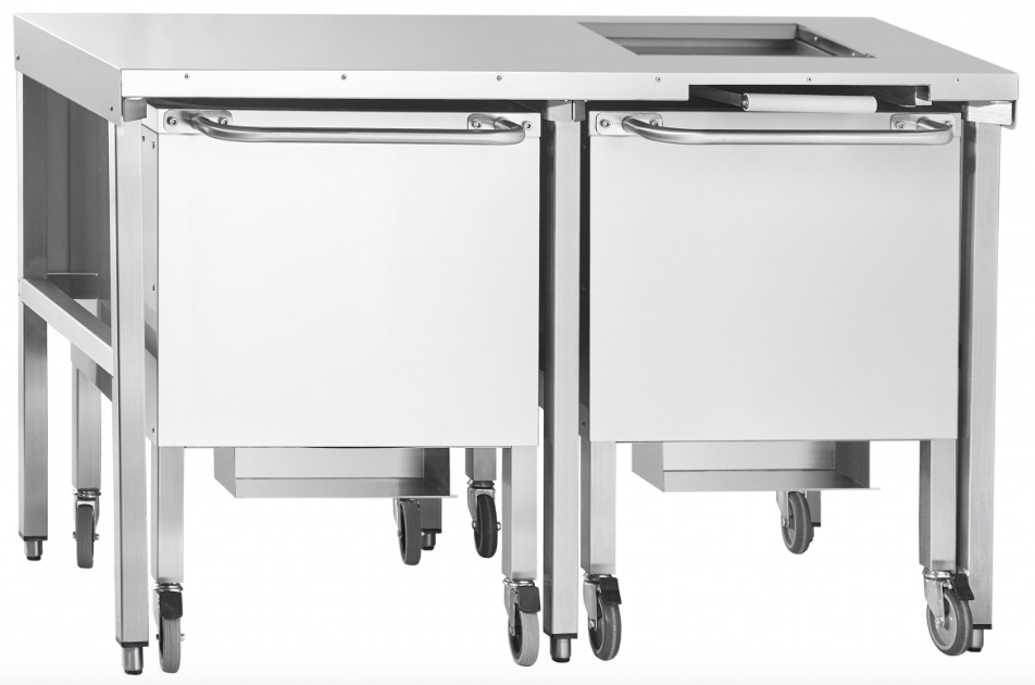 Наличие двух бункеров позволяет в ходе работы менять их местами (заменяя заполненный бункер пустым), не прерывая цикл работы льдогенератора.