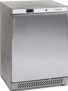 Шкаф холодильный низкотемпературный, корпус изготовлен из нержавеющей стали. Одна глухая самозакрывающаяся перенавешиваемая дверь, съемный дверной уплотнитель, электронный термометр, статическое охлаждение, 3 регулируемые по высоте полки, замок, два задних ролика и 2 передние регулируемые ножки. Цифровой дисплей показа температуры. Компрессор располагается в нижней части холодильника. Возможны 4 регулируемые по высоте ножки 150 мм или колёса (опционально). Хладагент R134a