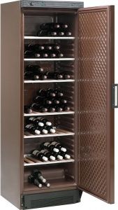 Внутренние размеры - 523x462x1555 мм. Полезный объем - 350 л (полный объем - 372 л). Размеры полки - 495x390 мм. Вместимость - 118 винных бутылок объемом 750 мл. Шкаф рассчитан на эксплуатацию при температуре +18...+32С. Хладагент - R134а, 200г. Уровень шума - 42дцб. Высота полок регулируется. Цвет: корпус - коричневый, внутренние поверхности - коричневый пластик ABS.