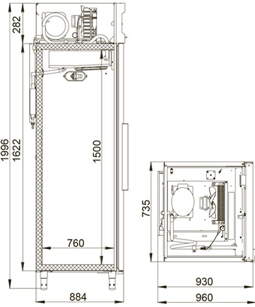 - Профессиональная динамическая система охлаждения равномерно распределяет холодный воздух по камере и обеспечивает охлаждение продуктов на всех полках.