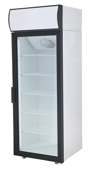 Холодильник односекционный со стеклянной дверью POLAIR DM105-S версии 2.0 (артикул 1103446d) для кафе, ресторанов, кулинарий, АЗС и пр. Предназначен для хранения и демонстрации напитков. Цельнозаливной корпус с полимерным покрытием, температурный режим +1°С до +10°С, динамическое охлаждение, объем 500 л, 5 полок 595х455 мм (с нагрузкой на каждую до 50 кг, с возможностью установки дополнительных), канапе, электронное управление, верхний агрегат с ж/к дисплеем, возможность изменения стороны открывания двери, автоматическая оттайка с испарением конденсата, хладагент R290.