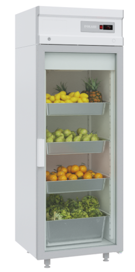 Холодильный односекционный шкаф со стеклом POLAIR DM107-S (без канапе) для кафе, ресторанов, школьных и других столовых, кулинарий, закусочных, АЗС и прочих предприятий общественного питания и торговли. Предназначен для хранения и демонстрации продуктов и напитков. Изготовлен из пенополиуретана с особо прочным антикорозийным покрытием, температурный режим +1°С до +10°С, объем 700 литров, электронное управление, верхний агрегат, направляющие GN2/1 (650х530мм), хладагент R290.