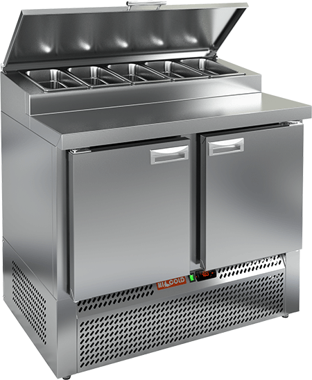 В столешнице предусмотрено размещение гастроемкостей для ингредиентов. Охлаждаемый объем. В столешнице предусмотрено размещение гастроемкостей для ингредиентов. Охлаждаемый объем. Внутри установлены полки-решетки. Пространство между внутренней и наружной стенкой заполнено пеной-теплоизолятором. Для обеспечения плотности прилегания дверей стола к корпусу - используется уплотнитель с магнитной вставкой. Цельнозаливной корпус. Электронный блок управления. Автоматическая оттайка.
