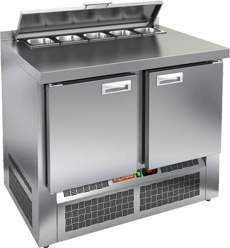 Стол холодильный для салатов (саладетта) HICOLD SLE2-11GN (1/6) стол с нижним расположением агрегата, выполнен полностью из нержавеющей стали, 2 распашные двери